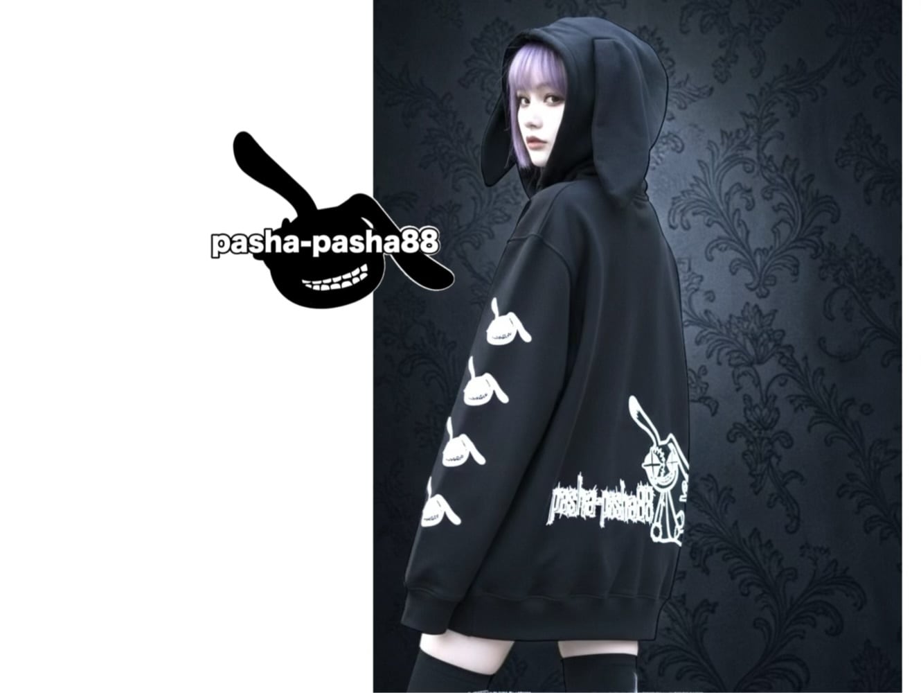 パーカー 黒 ジップ うさぎ サブカル ロック 地雷 闇 かわいい カッコいい トップス ユニセックス 原宿 韓国ファッション pasha-pasha88 パシャパシャハチハチ