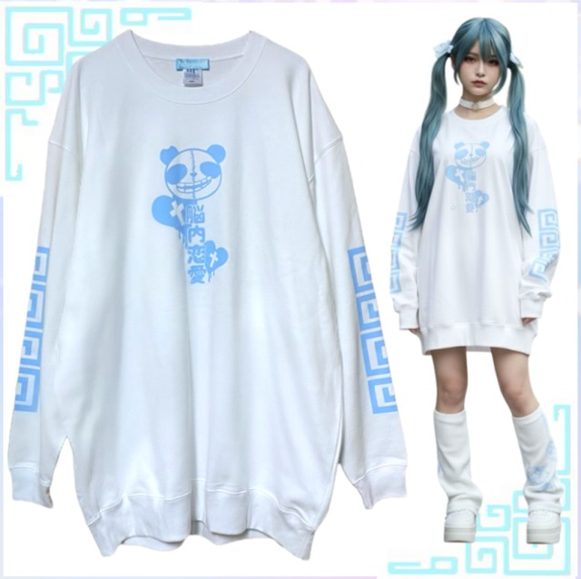天使界隈 闇 パンダ トレーナー スウェット チャイナ 水色 病みかわいい 量産型 サブカル メンヘラ 病み 地雷 やみかわ リボン 原宿 ゴス 韓国ファッション 漢字 オーバーサイズ 秋 冬 pasha-pasha88/パシャパシャハチハチ