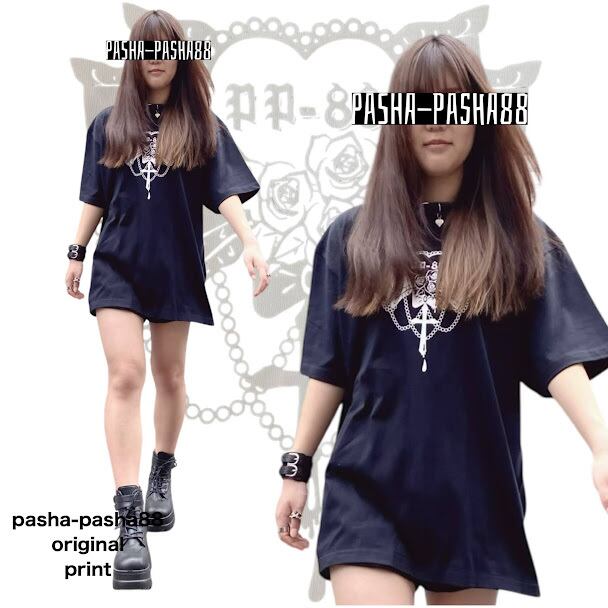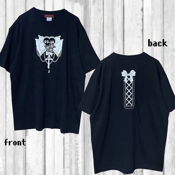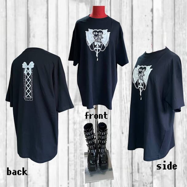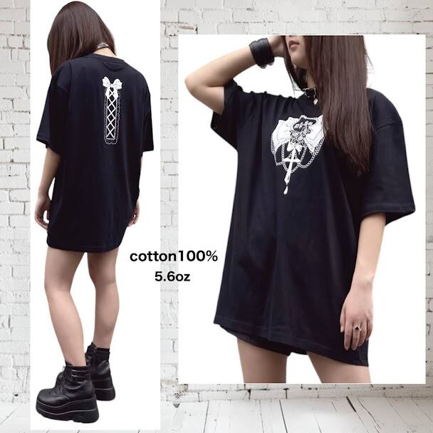 地雷系 Tシャツ 病みかわいい 病みかわいい系 地雷 サブカル サブカル系 リボン レースアップ メンヘラ 原宿 サブカル地雷 黒Tシャツ プリント イラスト かわいい 個性派 個性的 メンズ レディース ユニセックス 大きめ ファッション pasha-pasha88/ パシャパシャハチハチ/
