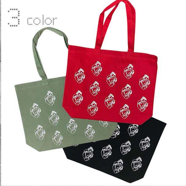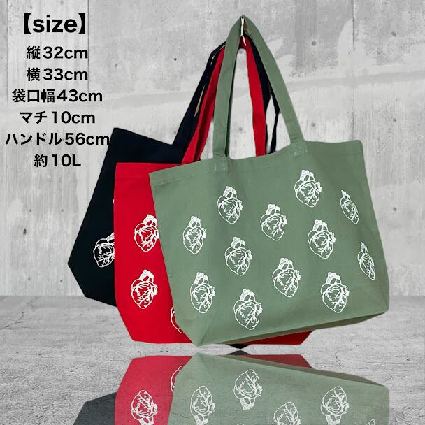 病みかわいい 地雷 サブカル 肩掛け 普段使い トートバッグ バッグ かばん キャンパスバッグ 個性的 サブバッグ エコバック 心臓 ブラック レッド グリーン 黒 赤 緑 オリジナル プリント かわいい コンビニ 原宿系 おしゃれ 個性派 韓国ファッション プレゼント