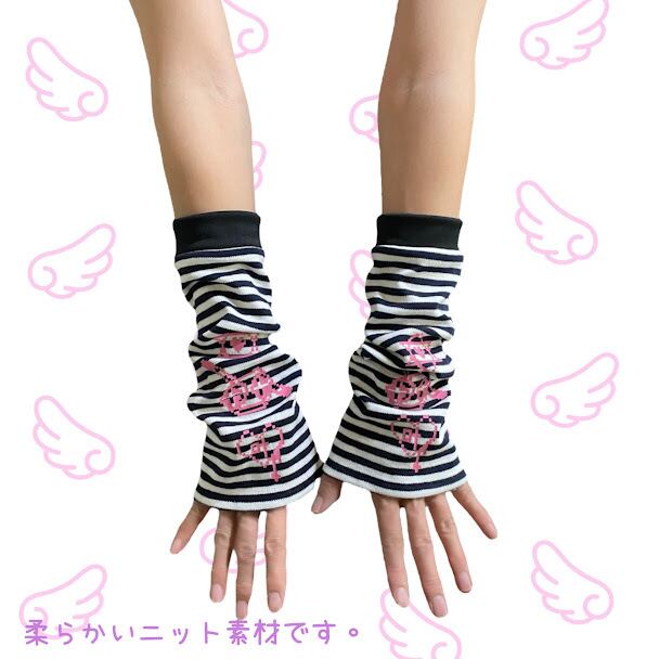 アームカバー アームウォーマー ストライプ y2k 闇系 ピープス系 量産型 病み系 病みかわ うさぎ 可愛い リボン ゴスガール プリント オリジナル メンヘラ サブカル 地雷 シンプル 原宿 系 個性的 おしゃれ pasha-pasha88/ パシャパシャハチハチ