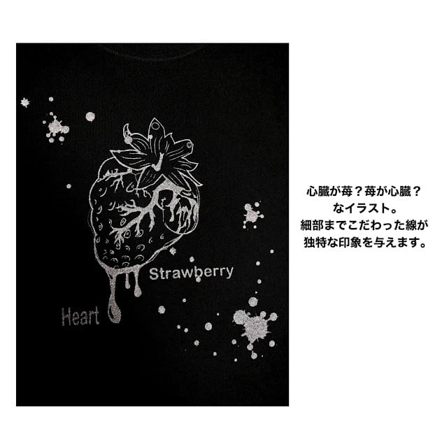 Tシャツ トップス 半袖 カジュアル 普段着 苺 ストロベリー 心臓 イラスト 綿100% レディース 黒 ブラック ショート丈 短丈 クロップド丈 かっこいい おしゃれ サブカル 大きめサイズ オリジナル 個性的 個性派 ビッグT pasha-pasha88 パシャパシャハチハチ