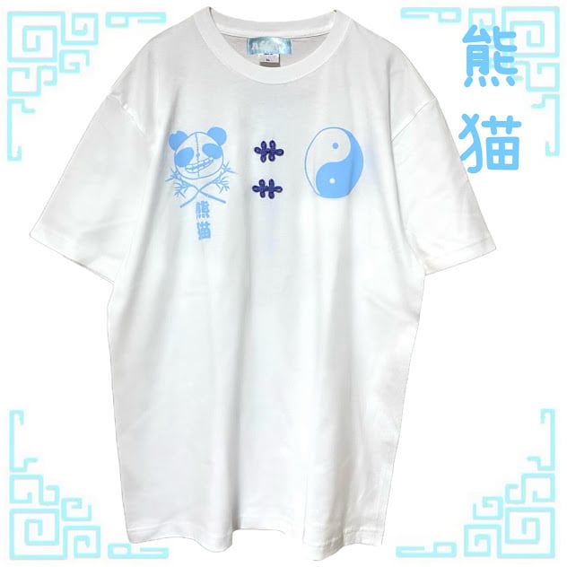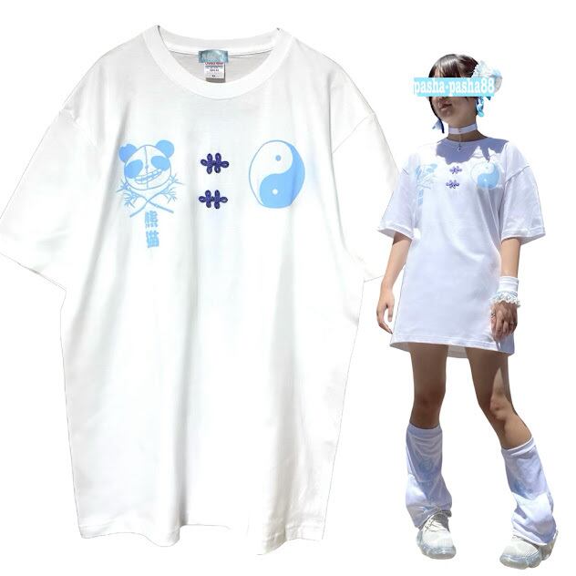 地雷 サブカル Tシャツ トップス 半袖 パンダ チャイナ 中華 闇パンダ 病みかわいい 天使界隈 水色界隈 白 ホワイト イラスト 綿100% レディース かっこいい おしゃれ サブカル 大きめサイズ オリジナル 個性的 大人かわいい ビッグT pasha-pasha88 パシャパシャハチハチ