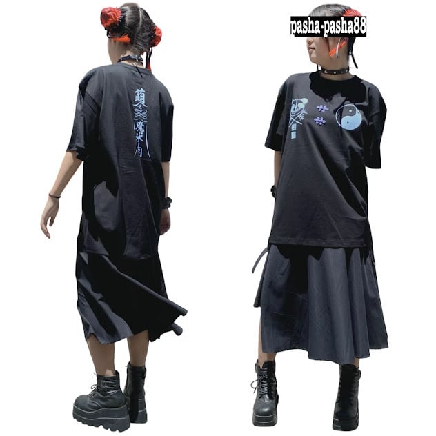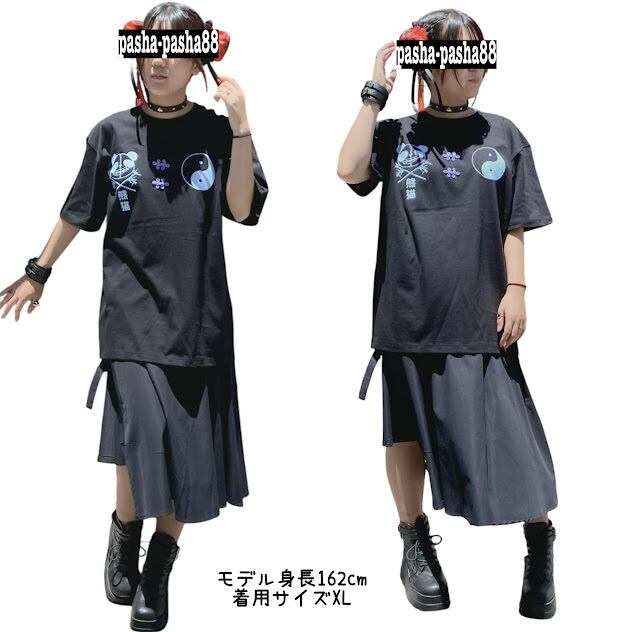 地雷 サブカル Tシャツ トップス 半袖 パンダ チャイナ 中華 闇パンダ 病みかわいい 黒 ブラック イラスト 綿100% レディース かっこいい おしゃれ サブカル 大きめサイズ オリジナル 個性的 大人かわいい ビッグT pasha-pasha88 パシャパシャハチハチ