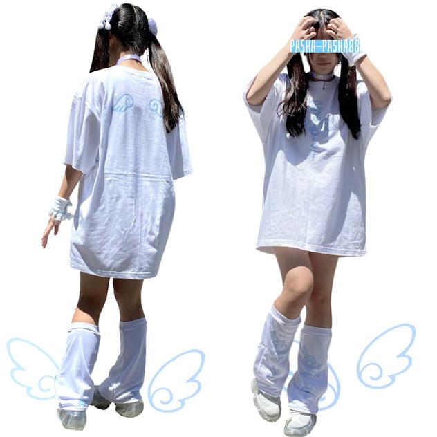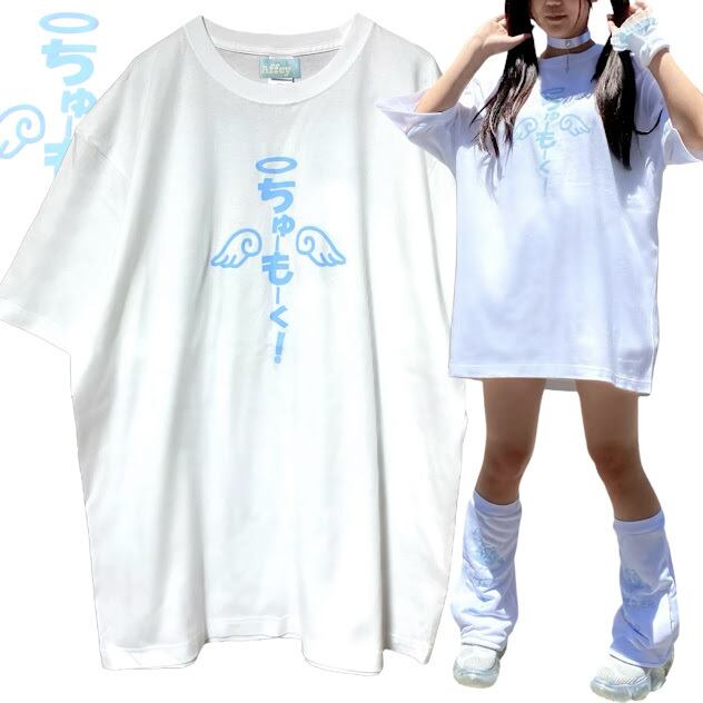 Tシャツ トップス 半袖 天使界隈 水色界隈 サブカル 漢字 ひらがな 文字 かわいい イラスト 綿100% レディース 白 ホワイト 病みかわ 地雷 かっこいい おしゃれ サブカル 大きめサイズ オリジナル ファッション 個性的 個性派 ビッグT pasha-pasha88 パシャパシャハチハチ