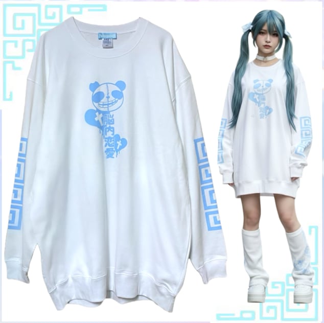 天使界隈 闇 パンダ トレーナー スウェット チャイナ 水色 病みかわいい 量産型 サブカル メンヘラ 病み 地雷 やみかわ リボン 原宿 ゴス 韓国ファッション 漢字 オーバーサイズ 秋 冬 pasha-pasha88/パシャパシャハチハチ