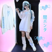 天使界隈 闇 パンダ トレーナー スウェット チャイナ 水色 病みかわいい 量産型 サブカル メンヘラ 病み 地雷 やみかわ リボン 原宿 ゴス 韓国ファッション 漢字 オーバーサイズ 秋 冬 pasha-pasha88/パシャパシャハチハチ