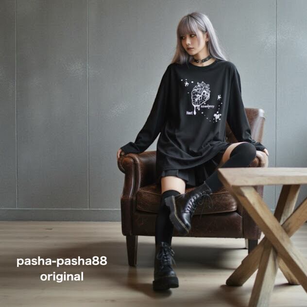 地雷 ロングTシャツ 苺 心臓 ロンT サブカル 病みかわいい ゴシック v系 ピープス系 スカル バンギャ ゴスロリ ゴスガール ラウド ロック 長袖 黒 ブラック 長T 韓国ファッション 原宿 ファッション パシャパシャハチハチ pasha-pasha88