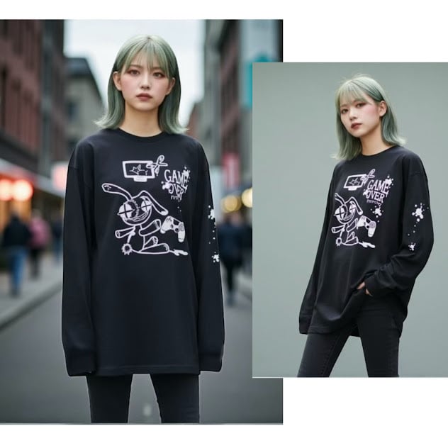 ロングT「ゲームオーバー闇うさぎ」は、個性的でありながらもデイリーユースにぴったりな一枚です!