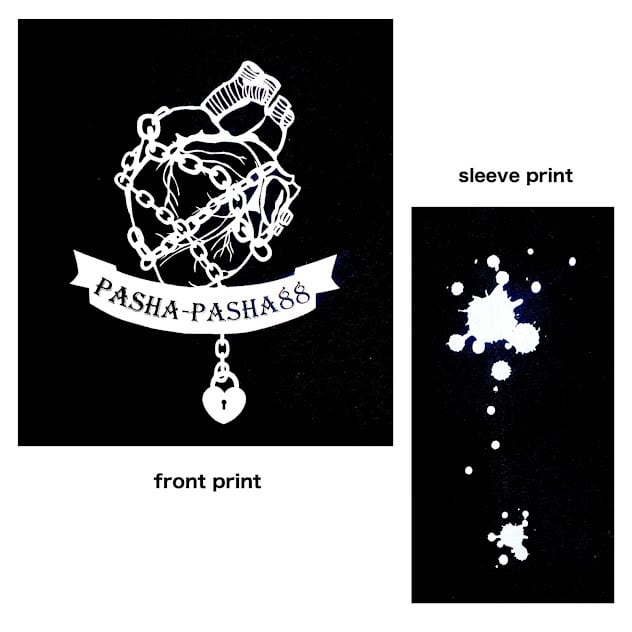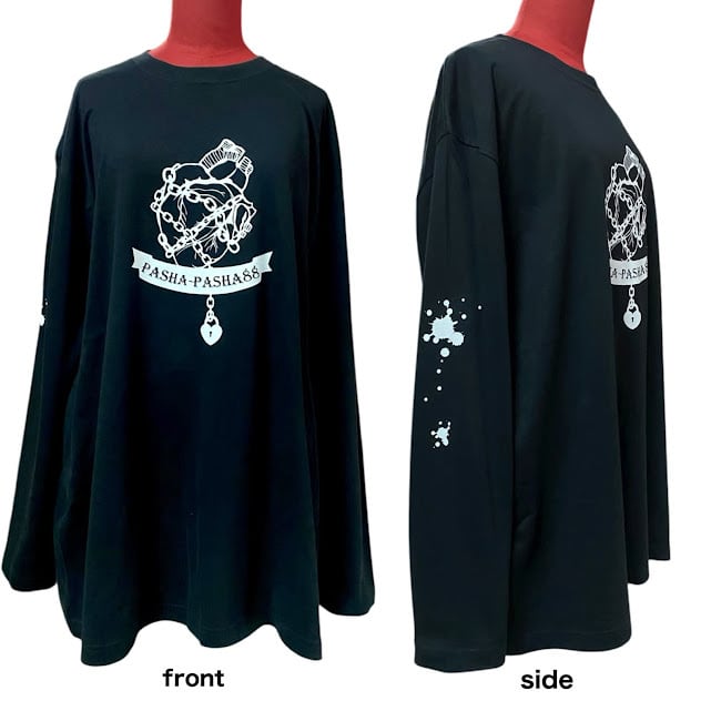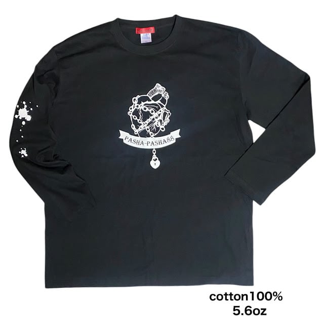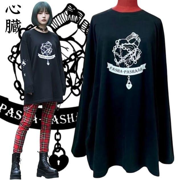 ロングTシャツ 病みかわ 地雷 闇 心臓 サブカル 鎖 黒 個性的 ロゴトップス 長袖 袖プリント 韓国ファッション 原宿 ピープス系 オリジナル pasha-pasha88 パシャパシャハチハチ