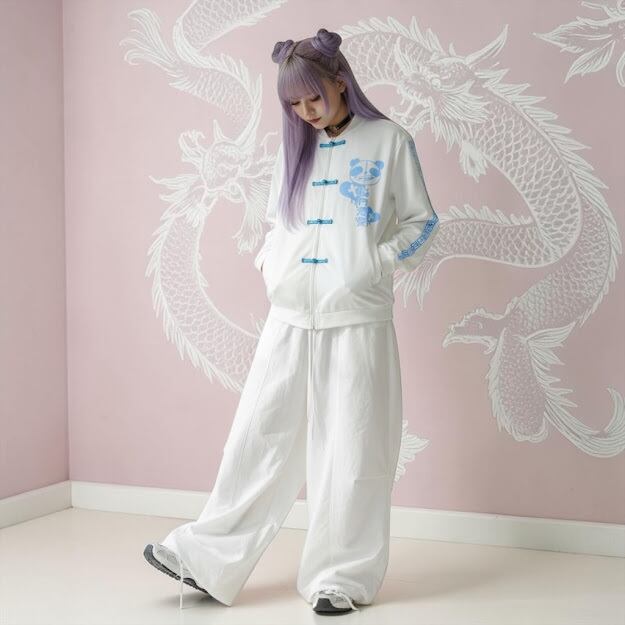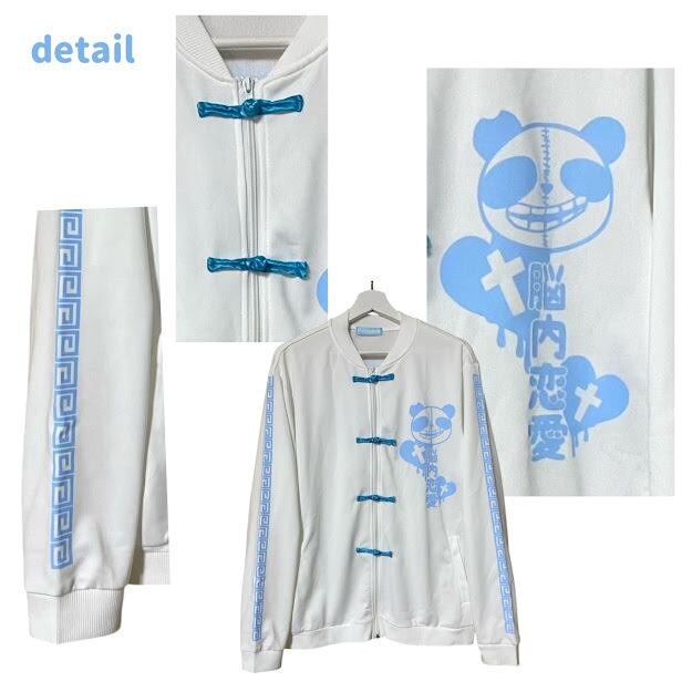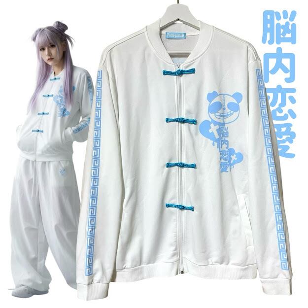 天使界隈 闇 パンダ ジャージ トラックジャケット チャイナ 水色 病みかわいい 量産型 サブカル メンヘラ 病み 地雷 やみかわ 原宿 ゴス 韓国ファッション 漢字 オーバーサイズ pasha-pasha88/パシャパシャハチハチ