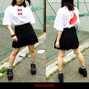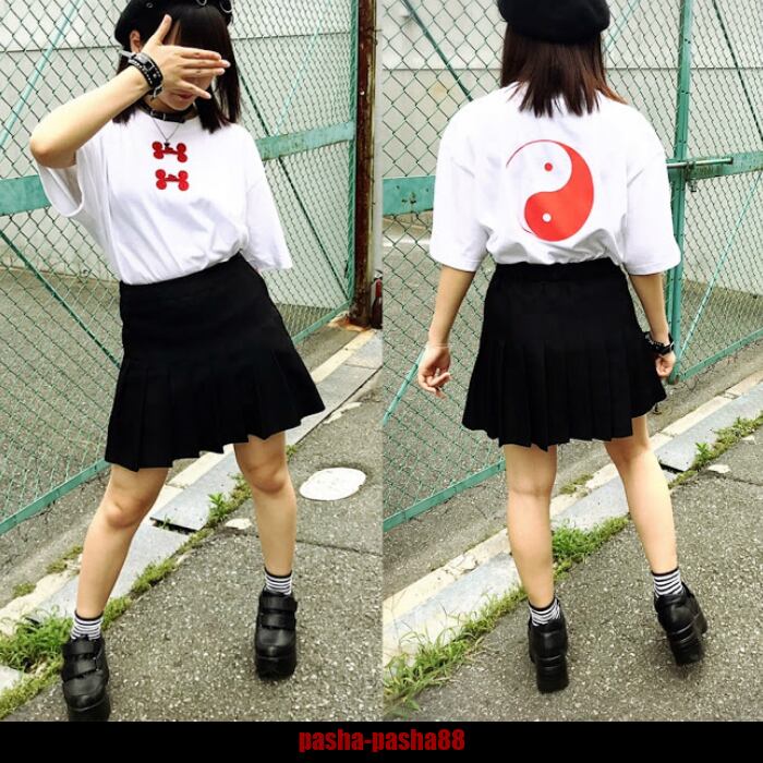 Tシャツ チャイナ シンプル トップス 陰陽 勾玉 中華 チャイナファッション 病みかわいい チャイナボタン 白T ホワイト ビッグ 陰陽 中華 サブカル プリント オリジナル おしゃれ 大きめ 大きいサイズ S.M.L.XL.XXL.4L