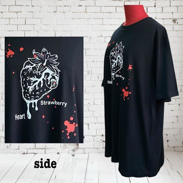 病みかわいい 病 かわいい 黒T サブカル地雷 苺 心臓 苺心臓 メンヘラ Tシャツ サブカル 原宿 系 原宿系 地雷 地雷系 プリント イラスト かわいい 黒 メンズ レディース ユニセックス オリジナル ファッション pasha-pasha88/ パシャパシャハチハチ/