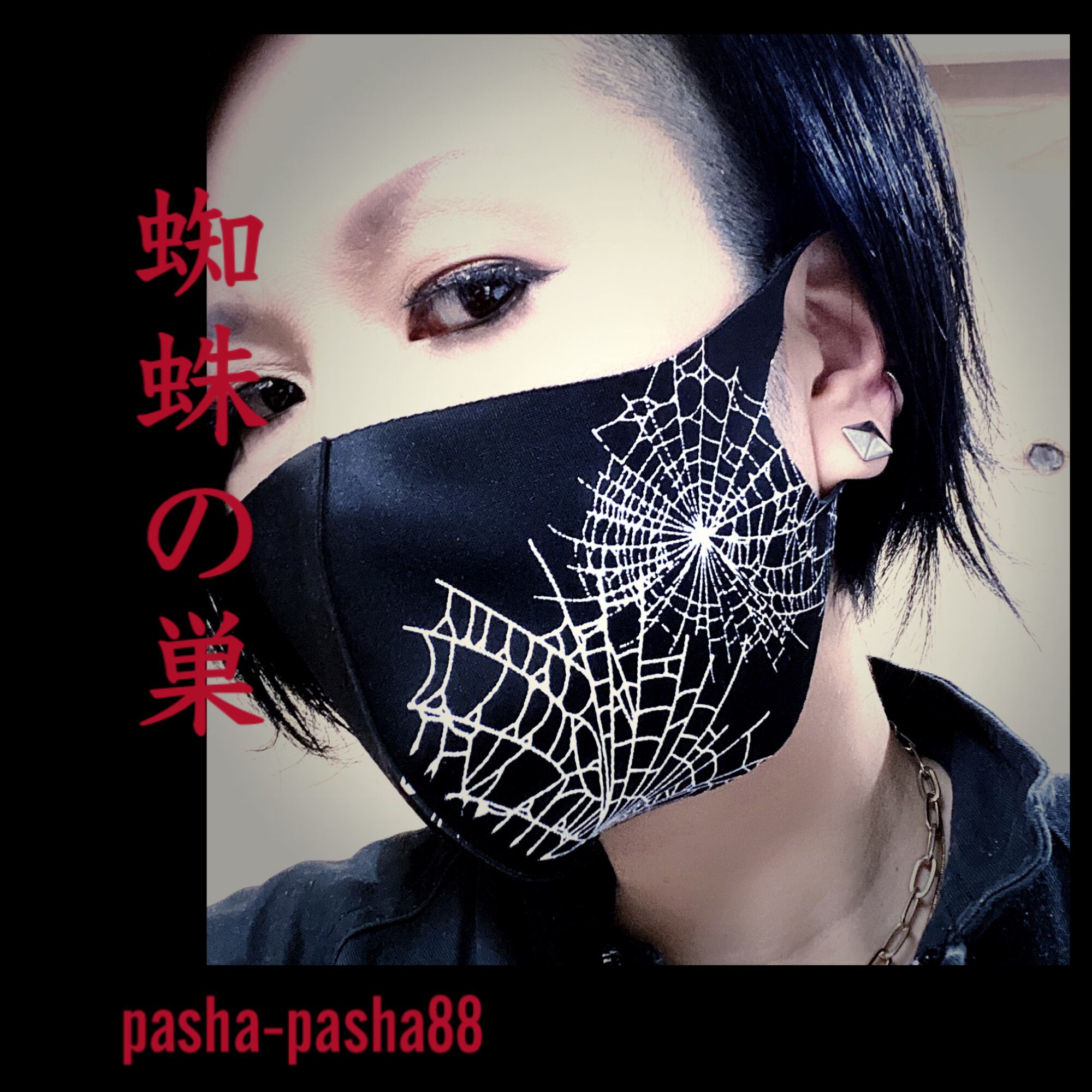 マスク 黒マスク メンヘラ 病み可愛い 地雷 地雷系 洗える かわいい かっこいい ロック バンギャ 原宿 系 サブカル 病 個性的 個性派 おしゃれ 病 病みかわいい 闇 めんへら 白 プリント 蜘蛛の巣