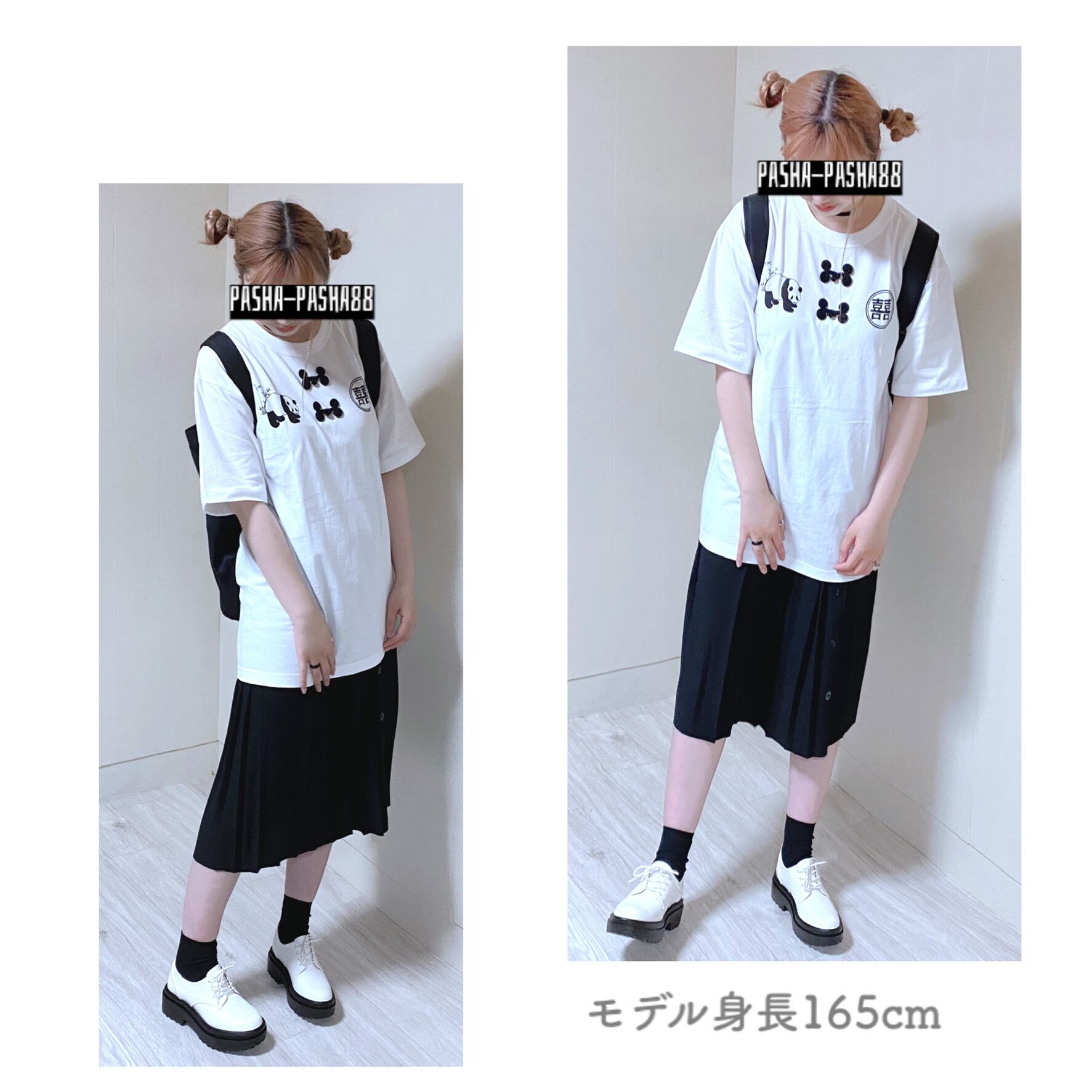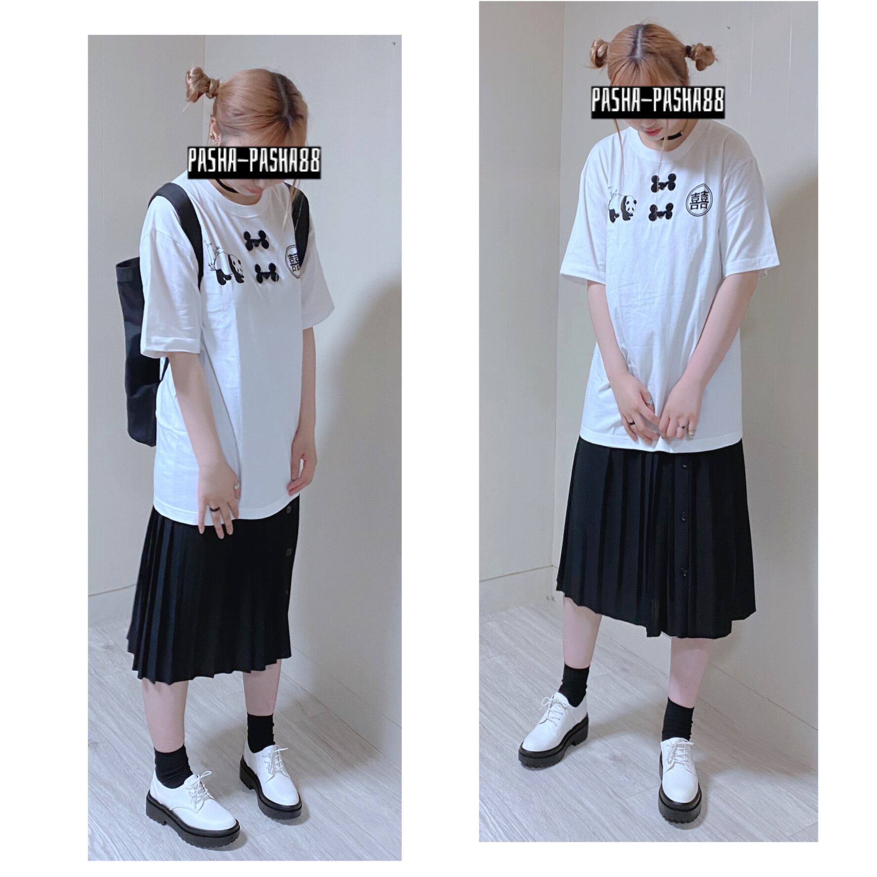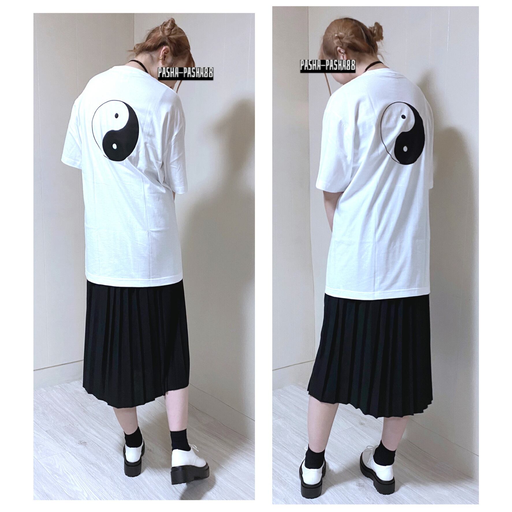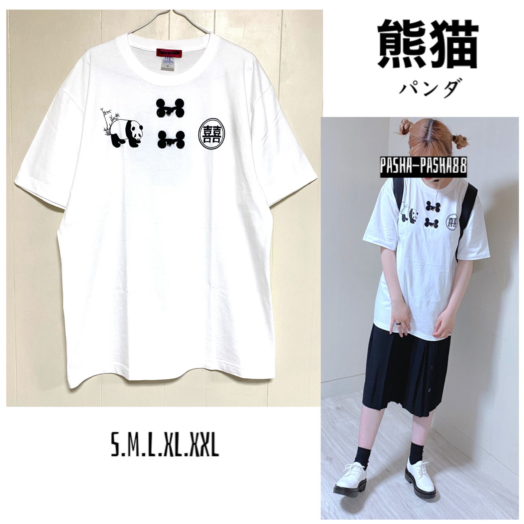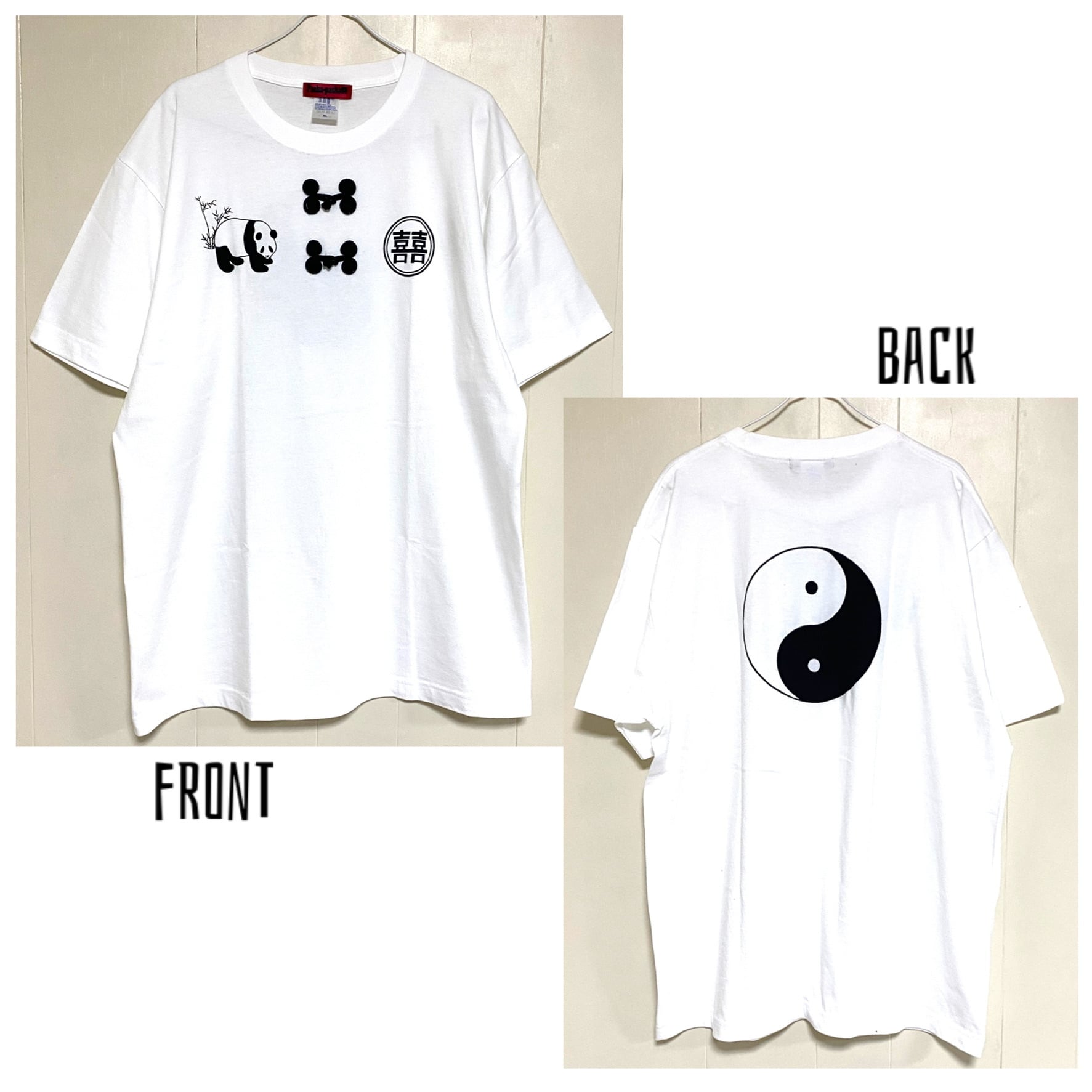 モノトーン チャイナ 病みかわいい パンダ Tシャツ ゆめかわ 夢 かわいい 双子コーデ パンダ 陰陽 サブカル メンヘラめんへら 原宿