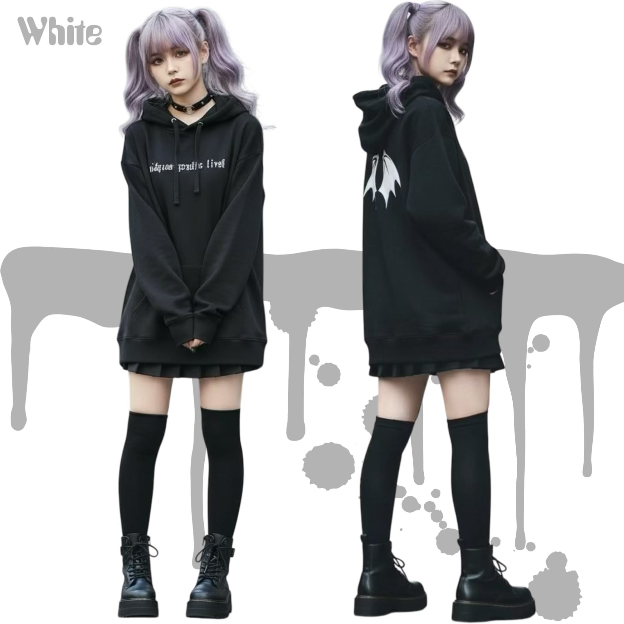 #サブカル #病みかわ #地雷 #悪魔羽 #オリジナル #韓国ファッション #原宿 #個性的 #パーカー #ホワイトプリント #闇系 #メンヘラ #pasha-pasha88