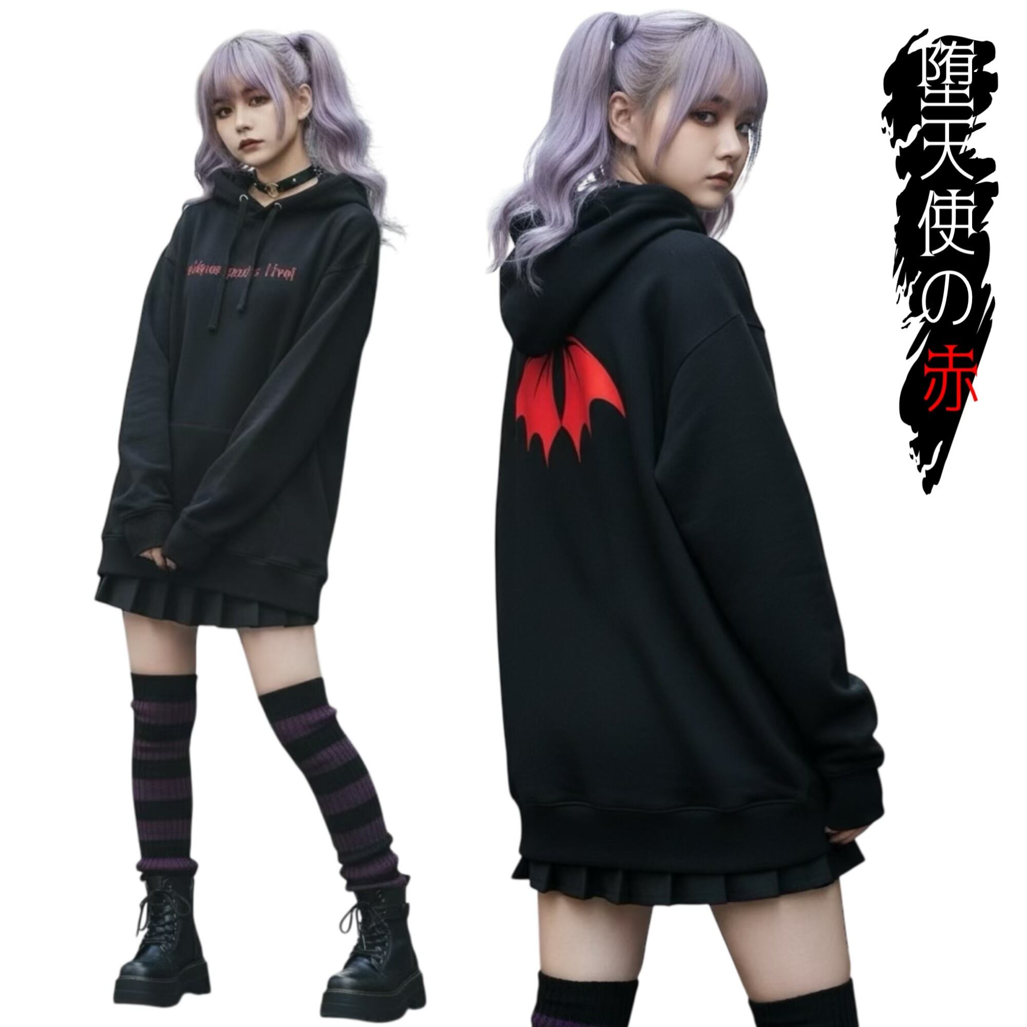 赤の羽が映える闇テイストのかわいいパーカーです。