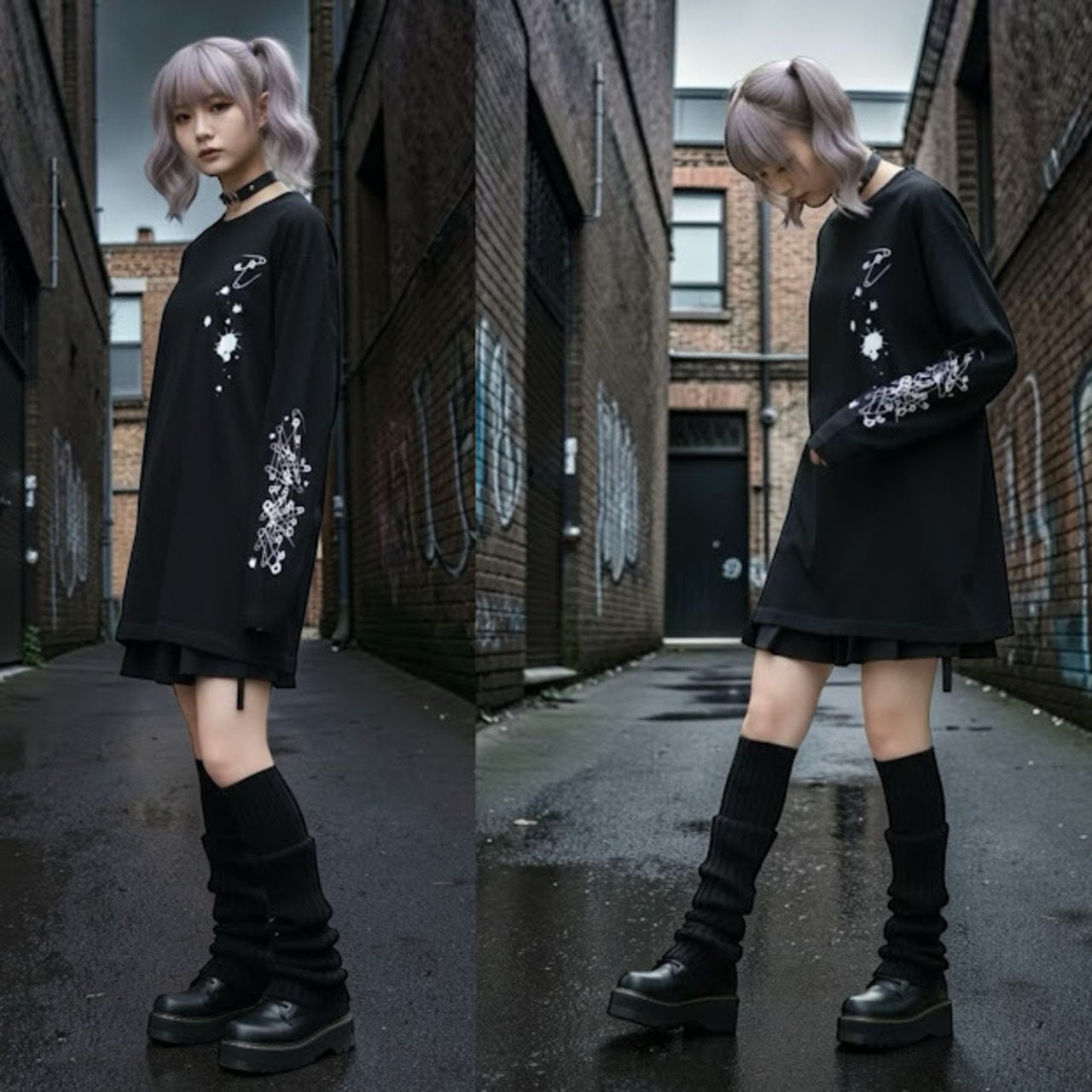 サブカル地雷 ロングTシャツ 長袖 大きいサイズ 地雷 地雷系 サブカル かわいい オリジナル メンヘラ やみかわ 病み ロック バンギャ 原宿 レディース メンズ ユニセックス サブカル 安全ピン 個性的 韓国ファッション 袖プリント パシャパシャハチハチ pasha-pasha88