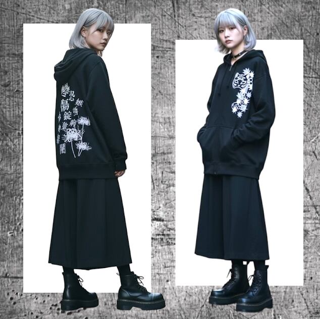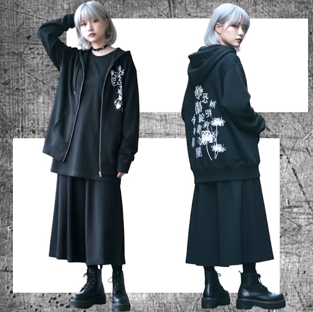地雷 病みかわいい パーカー 地雷系 やみ系 ジップアップパーカー サブカル地雷 メンズ レディース ユニセックス フルジップパーカー 漢字 羽織 和風 狐 紅葉 闇狐 重ね着 メンヘラ サブカル 個性的 個性派 ブラック オリジナル pasha-pasha88/ パシャパシャハチハチ/