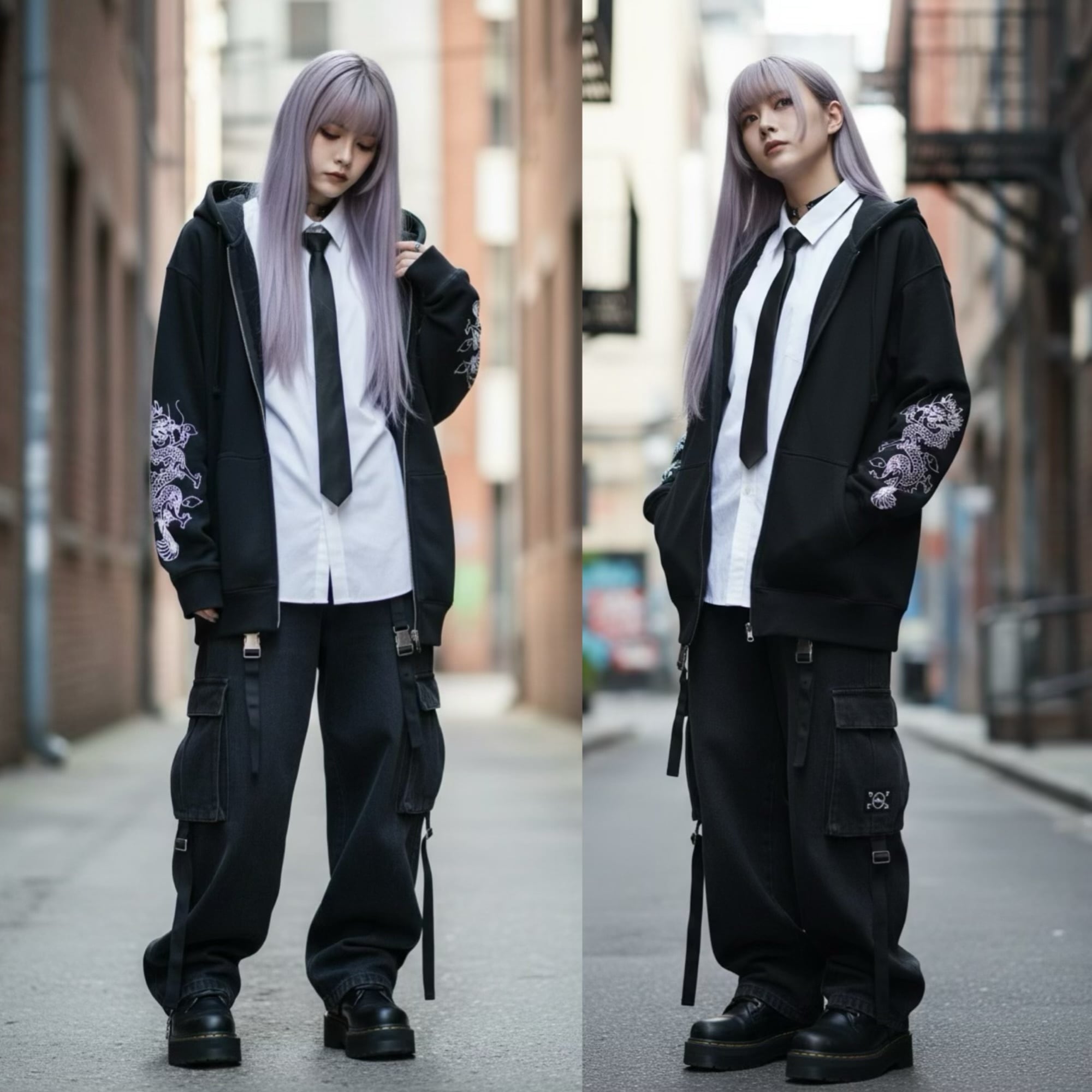 パーカー チャイナ 龍 中華 ドラゴン 黒パーカー ジップアップーバーパーカー ブラック 袖プリント 大きいサイズ 大きめ ビッグシルエット 地雷 地雷系 ブラック 黒 病み可愛いサブカル ロック バンギャ 個性的 個性派 pasha-pasha88/ パシャパシャハチハチ/