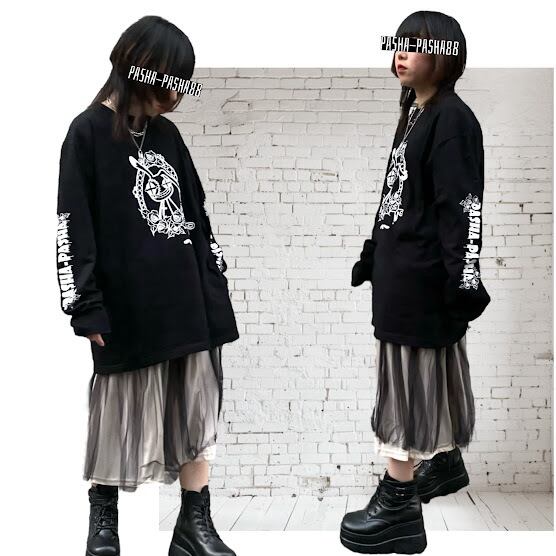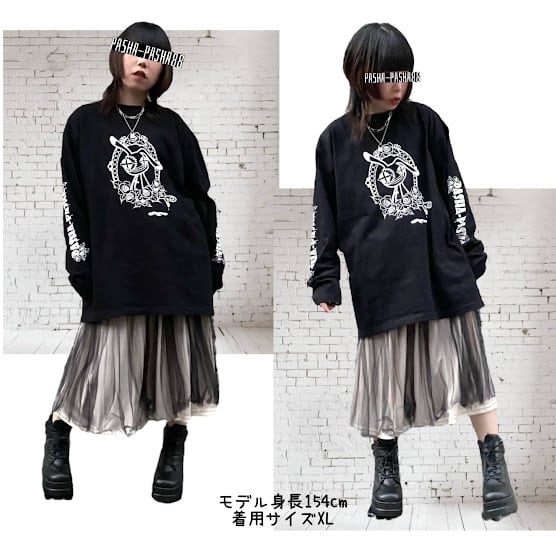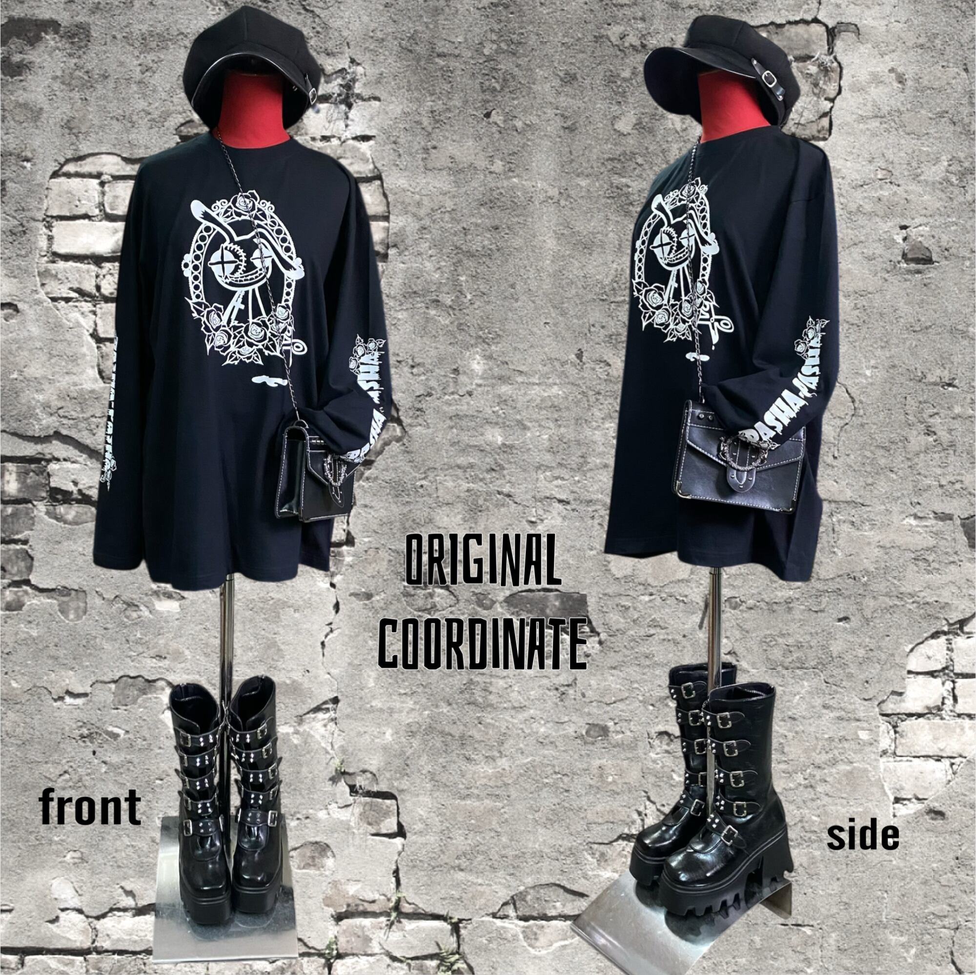 ロングTシャツ 闇かわいい ウサギ ロゴ 地雷 大きいサイズ 大きめ ビッグシルエットプリント 闇ウサギ 地雷 地雷系 病み可愛い サブカル おもしろい 個性的 個性派 pasha-pasha88/ パシャパシャハチハチ/affey/アフィー
